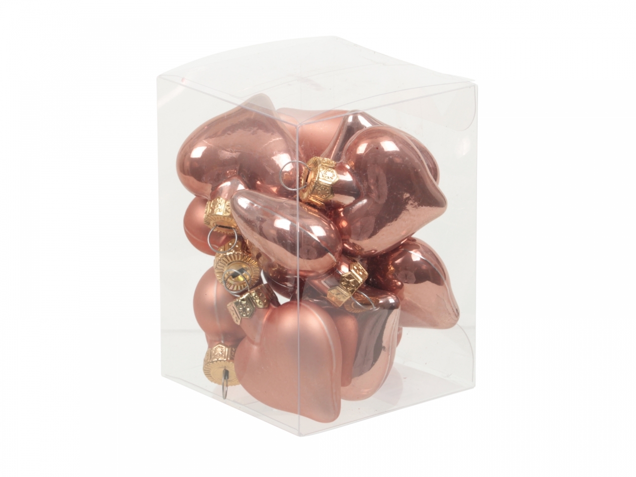 Skleněné baňky - srdce 4 cm, coral, sada 12 ks