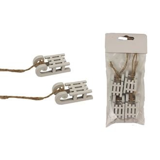 Sada dekoračních sáněk k zavěšení.Sada obsahuje 4 sáňky.Rozměry : 5 x 2,2 cm, výška 1,8 cm.Barva : bílá.Materiál na bázi dřeva.