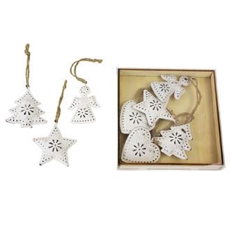 Sada vánočních ozdob na stromeček. Sada obsahuje 8 kusů, motiv - anděl, srdce, strom, hvězda.
