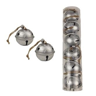 Sada dekoračních rolniček k zavěšení.Sada obsahuje 6 rolniček.Rozměry : průměr 5 cm, výška 4 cm.Barva : stříbrná.Materiál : kov. číst celé