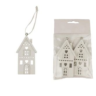 Dekorační domeček k zavěšení.Balení obsahuje 2 domečky.Rozměry : 5 x 0,5 cm, výška 10 cm.Barva : bílá.Materiál na bázi dřeva. číst celé