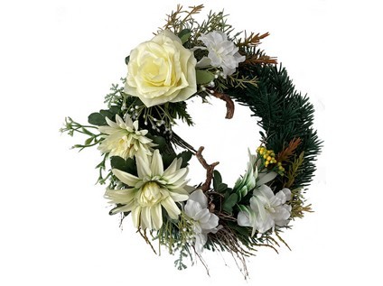 dekorace VĚNEC dušičkový pr.28cm ŽL, FI květy