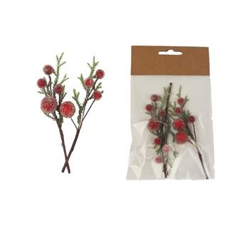 Dekorační větvička.Balení obsahuje 3 větvičky.Rozměry : 3 x 2 cm, délka 11 cm.Barva : kombinace hnědá, červená, zelená.Materiál : plast. číst celé