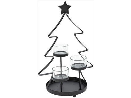 Svícen na 3 svíčky STROMEK 29 cm, kov. drát, ČER + sklo.