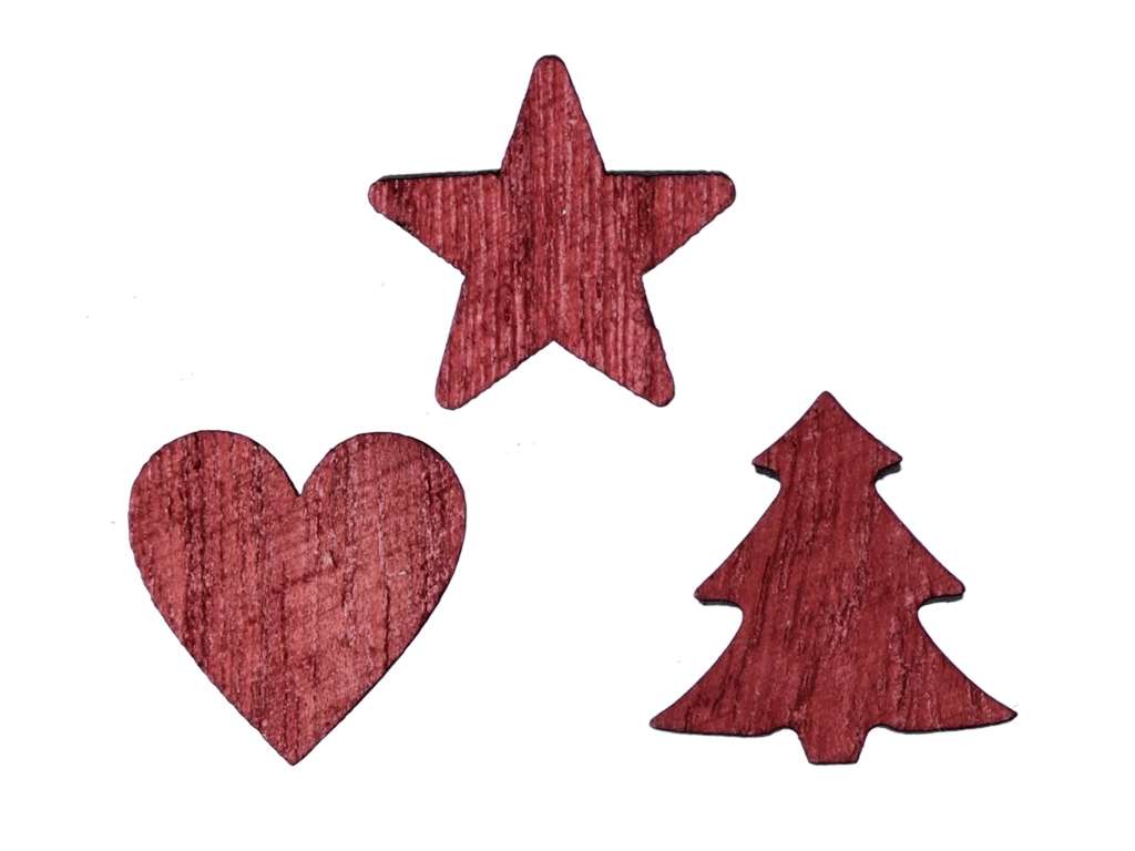 Dřevěné dekorace červené, sada 48 ks