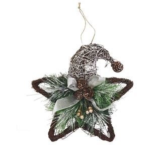 Dekorační hvězda k zavěšení.Rozměry : 26 x 26 cm, tloušťka 4 cm.Barva : kombinace hnědá se zelenou.Materiál : přírodní, plast.