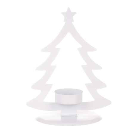 kovový svícen na čajovou svíčku ve tvaru stromku. Bílá barva. PARAMETRY PRODUKTU Hloubka (cm) : 10 Šířka (cm) : 13 číst celé