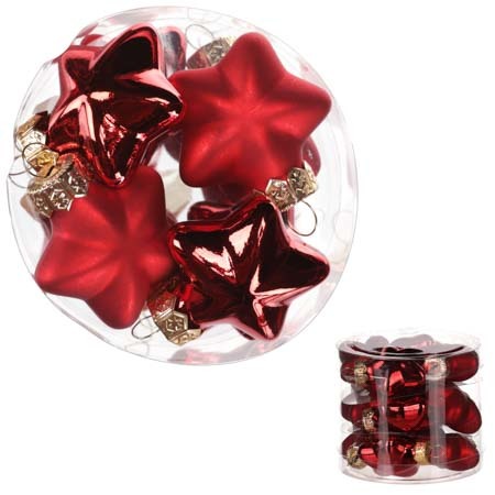 Ozdoby skleněné- tvar hvězdy, červené, pr. 4cm, cena za 1 balení (12 ks)