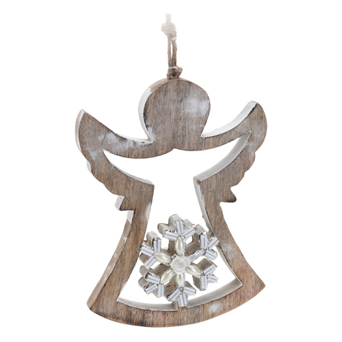 Vánoční ozdoba - dřevěná, anděl s korálky 18,5 cm, 1ks