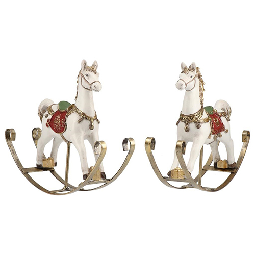 Hojadúce koníky v bielej farbe a s kovovou konštrukcou. Biela farba, červeno zelené doplnky a zlaté kovanie budú zaručene krásnou dekoráciou počas zimných sviatkov. číst celé