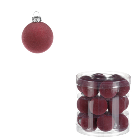 Vánoční plastové koule, sametové, fialová barva. Cena za 1box/18ks.