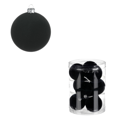 Vánoční plastové koule, sametové, černá barva. Cena za 1box/9ks.