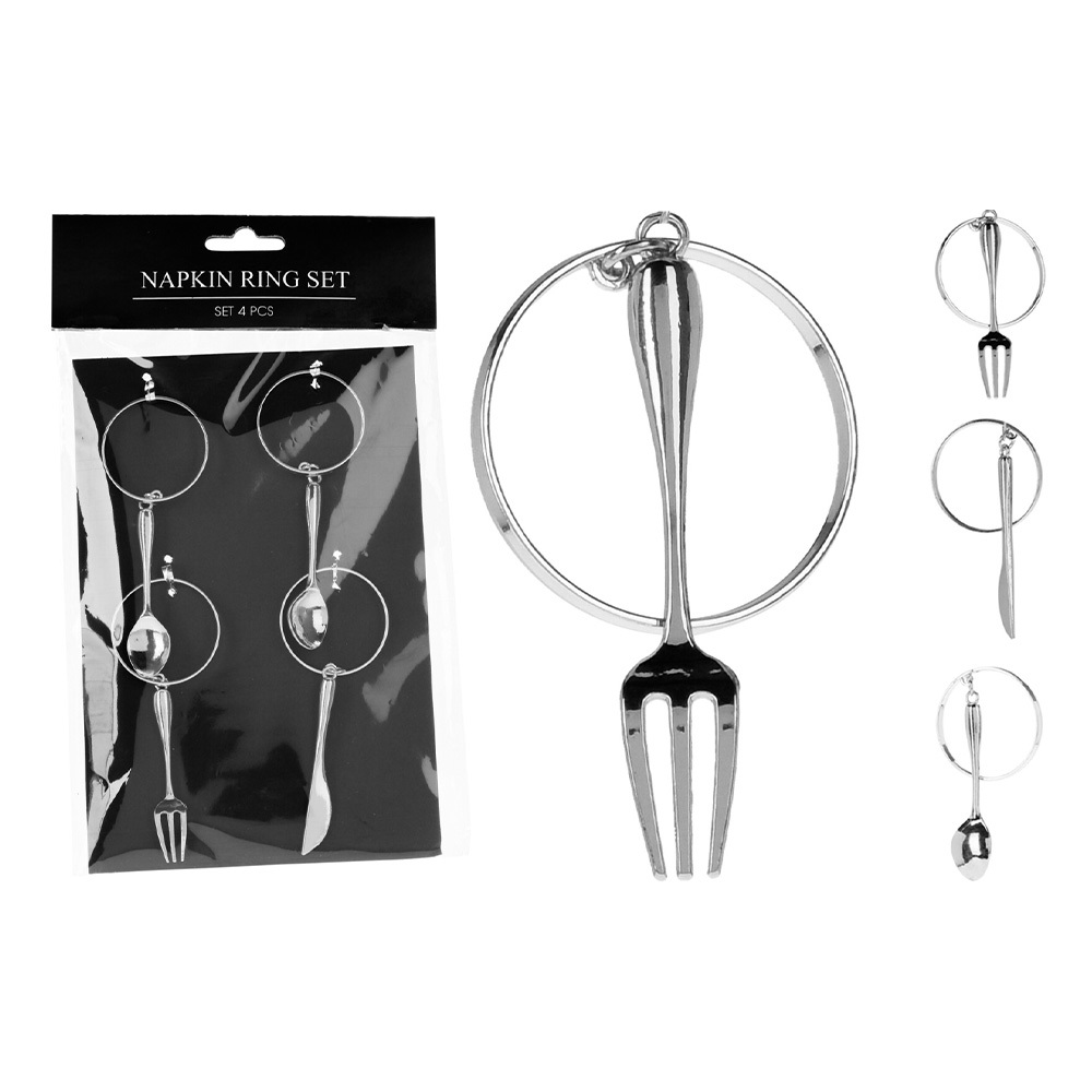 Dekorační obroučky na ubrousky v designu příboru - stříbrné, sada 4 ks
