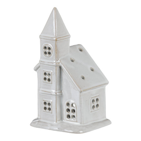 Kostel porcelánový šedivý, lesklý, na čajovou/LED svíčku.