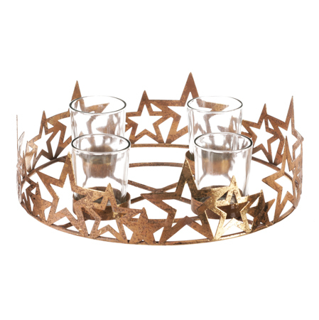 Svícen kovový adventní, zlatý.