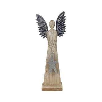Dekorační anděl.Rozměry : 10 × 4,5 cm, výška 25,5 cm. Barva : kombinace přírodní, stříbrná.Materiál na bázi dřeva, kov. číst celé