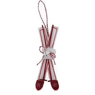 Dekorační lyže k zavěšení.Rozměry : 6 × 3,3 cm, výška 16,5 cm.Barva : kombinace bílá s červenou.Materiál na bázi dřeva. číst celé