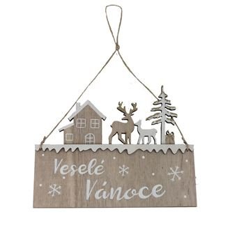 Dekorace k zavěšení.Rozměry : 22 × 17,3 cm, tloušťka 0,8 cm.Barva : kombinace přírodní s bílou.Materiál na bázi dřeva. číst celé