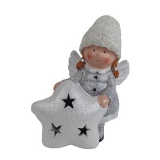 Dekorační anděl s LED osvětlením.2 x baterie LR44 je součástí výrobku.Třída ochrany: IP20 (vnitřní použití).Rozměry : 13,8 × 8,5 cm, výška 16 cm.Barva : kombinace šedá s bílou.Materiál : keramika, textil.