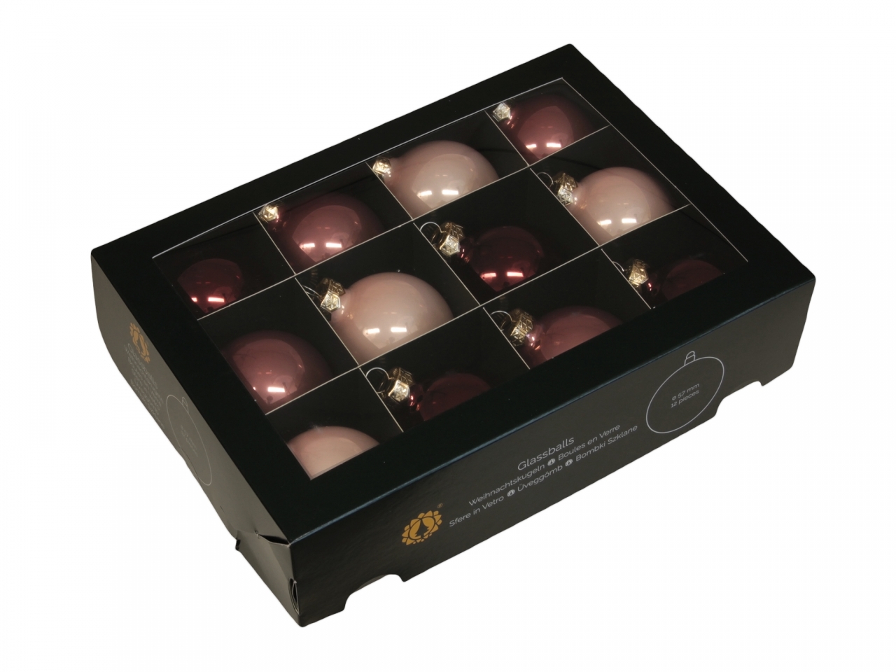 Sada 12 ks skleněných baněk v barvě divoký květ. V sadě jsou namíchané lesklé a matné baňky.
