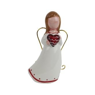 Dekorační anděl se srdíčkem.Rozměry : 7,8 x 4,4 cm, výška 12,7 cm.Barva : kombinace bílá s červenou.Materiál : keramika, kov.