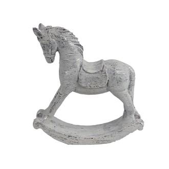 Dekorační koník.Rozměry : 14 × 3,5 cm, výška 15 cm. Barva : kombinace bílá, stříbrná.Materiál : polyresin. číst celé