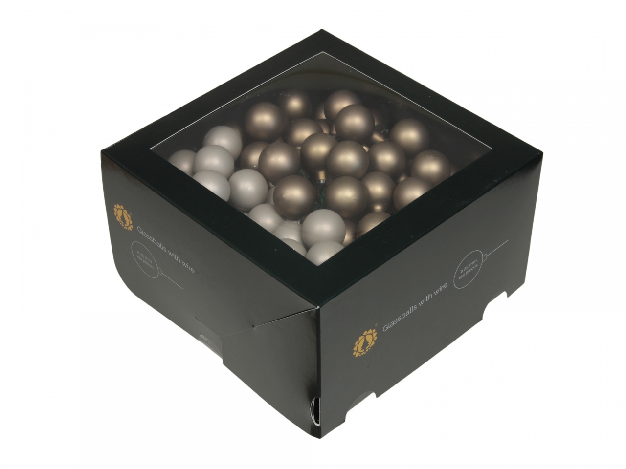 Sada 144 ks skleněných baněk s drátkem v barvě eukalyptu.