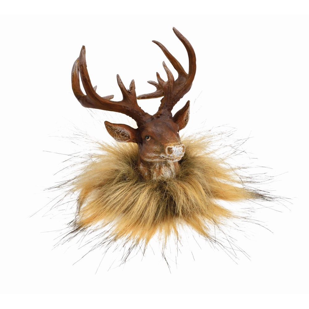 Dekorace - hlava jelena s umělou kožešinou 8x11x10 cm