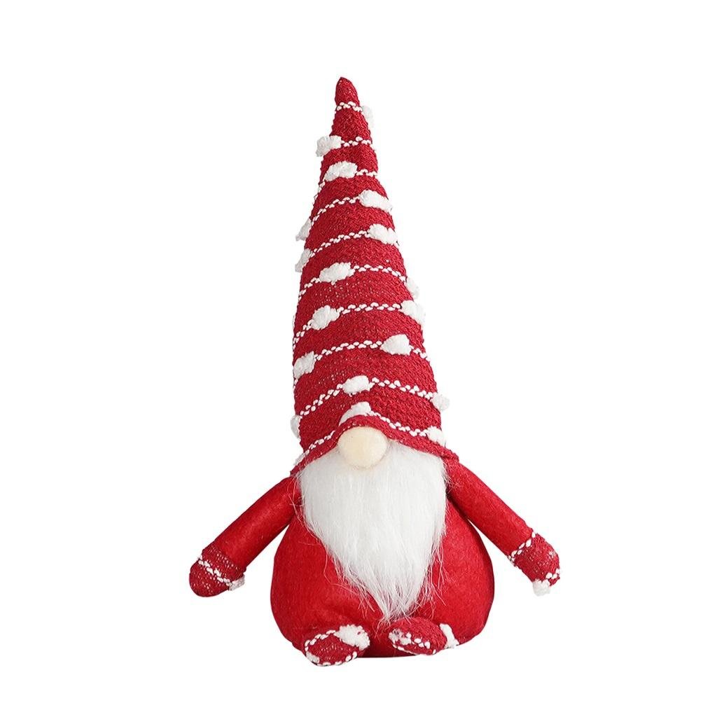 Skrzat dekoracyjny z puchatą brodą. Wykonany z miękkiego filcu i materiału w kolorze czerwonym. Dekoracja stojąca, dół ozdoby został obciążony, aby umożliwić stabilne jej postawienie. Skrzat ma długą, szpiczastą czapkę materiałową w wypukłe, miękkie kropki. Uniwersalna dekoracja świąteczna pasująca do każdego wnętrza lub ciekawy pomysł na prezent. Skrzat o wysokości 32 cm.