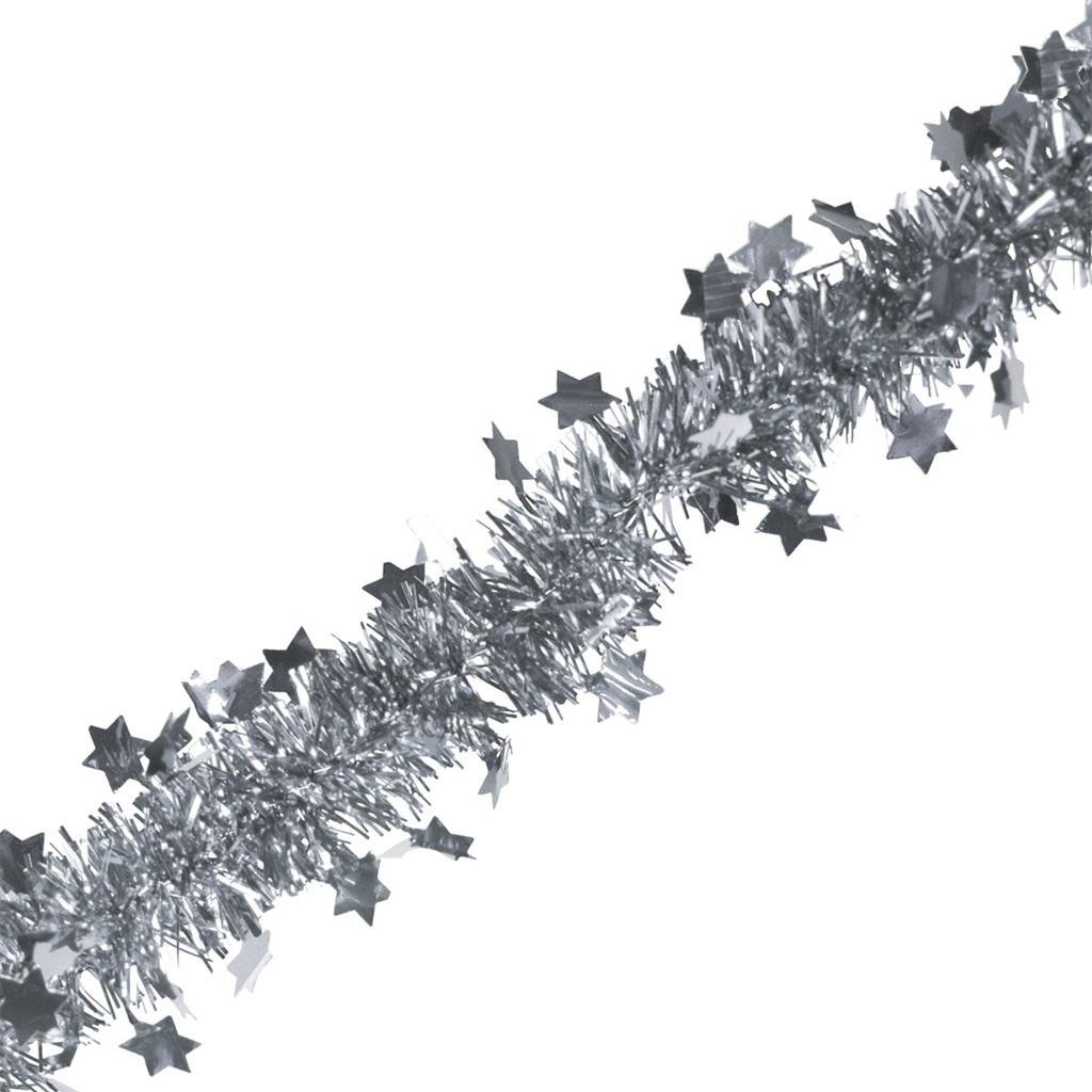 Łańcuch z gwiazdkami/ śnieżynkami srebrny 200cm
