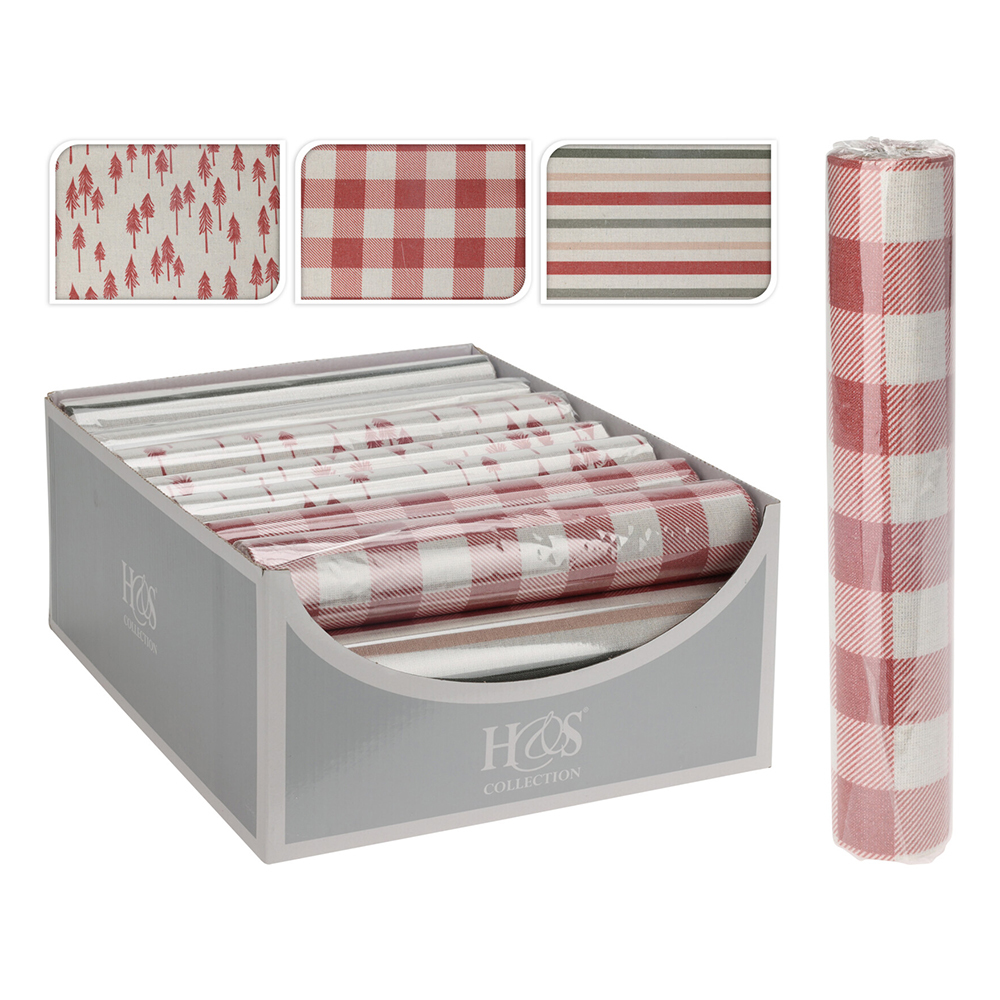 Středový pás pro sváteční stolování s digitálním potiskem / 3 vzory s lesklou stříbrnou nití.