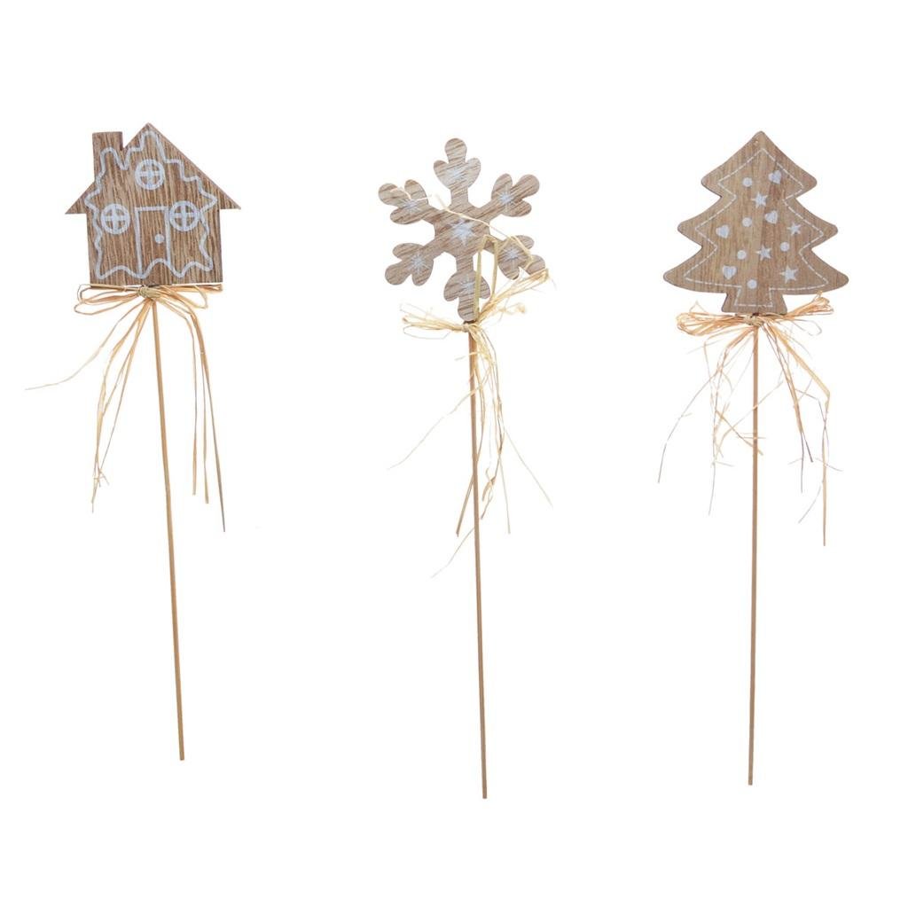 Drewniane piki w świątecznych wzorach ozdobione rafią. Wysokość piku to 25 cm. číst celé