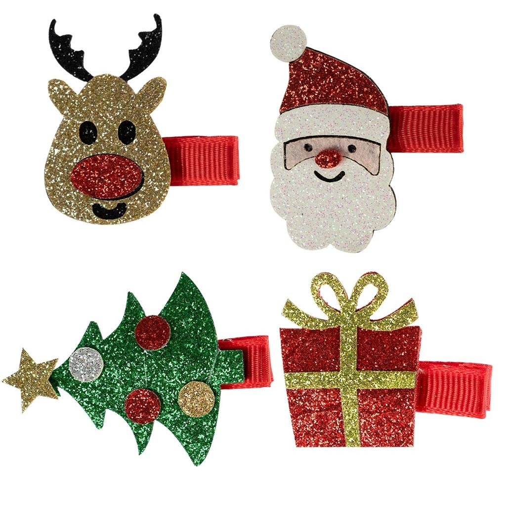 Spinki do włosów ze świątecznymi motywami. Elementy pokryte brokatem pięknie się mienią w świetle. Idealny mały świąteczny dodatek do stroju na Mikołajki lub na święta. Wymiary produktu: 3x3, 5-4 cm (w zależności od wzoru). W opakowaniu znajdują się 2 spinki. Dostępne wzory: mikołaj i renifer,...