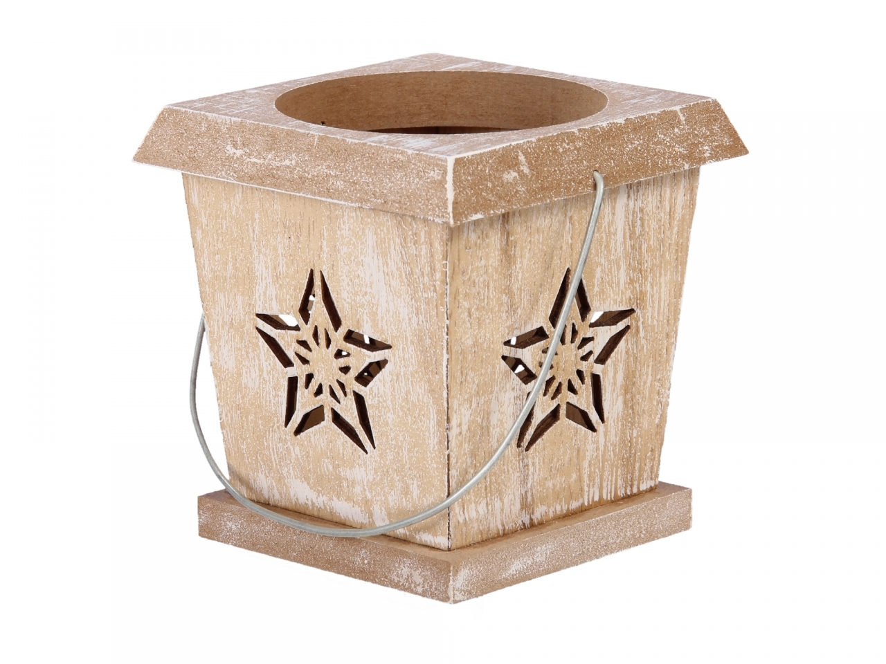 Dřevěný svícen na čajovou svíčku s výřezy v podobě hvězdiček.