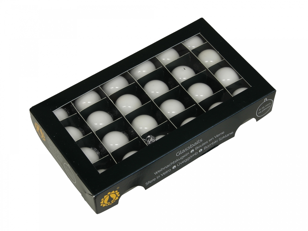 Skleněné baňky bílý opál 2,5 cm, sada 24 ks