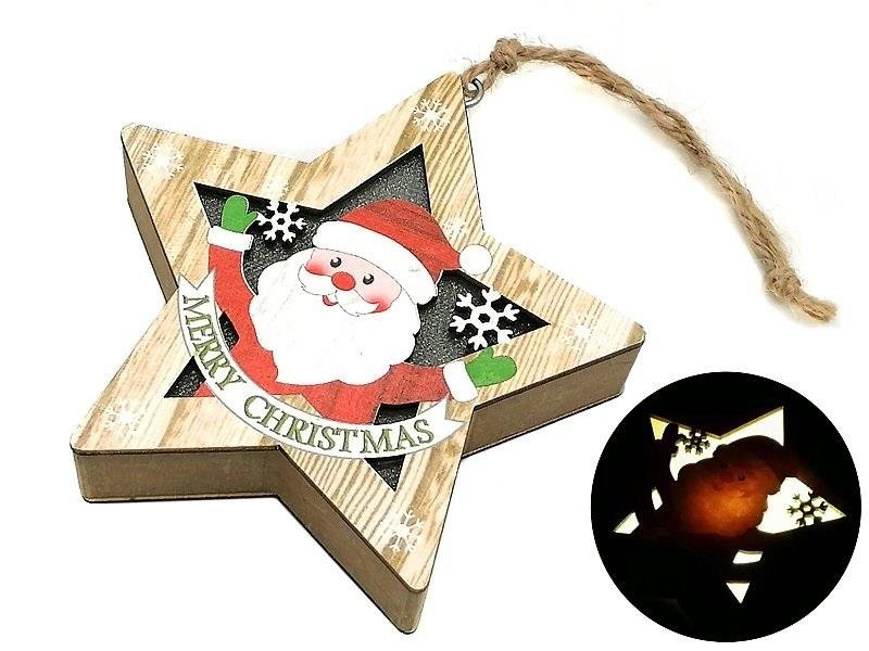 Zawieszka świąteczna drewniana ze światłem LED