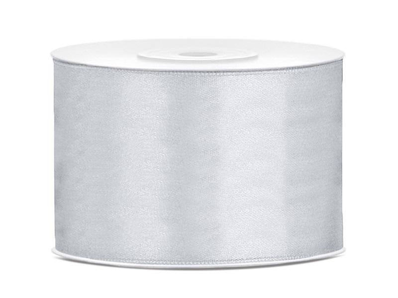 Tasiemka satynowa w kolorze srebrnym, szerokość 50 milimetrów, długość 25 metrów. číst celé