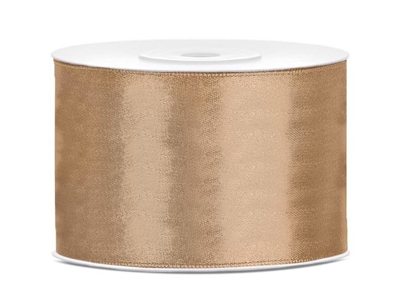Tasiemka satynowa w kolorze jasnozłotym, szerokość 50 milimetrów, długość 25 metrów. číst celé