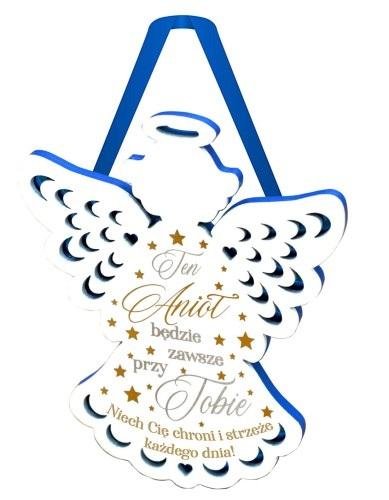 Zawieszka od serca w formie Aniołka to niezapomniany pomysł na prezent na Boże Narodzenie. Wykonana z solidnej płyty MDF z wyżłobionymi lustrzanymi zdobieniami i napisami z krótką sentencją Na tylnej ściance Aniołka jest tasiemka do zawieszenia na ścianie. Cechy szczególne: typ: zawieszka do powieszenia wielkość orientacyjna: wysokość: 14 cm, szerokość: 12,5cm (skrzydła), grubość: 7mm zdobienie: wzory wyżłobione w drewnie z lustrzaną folią, kolorowy napis okazja: Boże Narodzenie