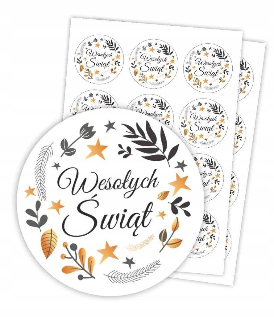 Zestaw 24 naklejek "Wesołych Świąt" - idealna dekoracja do prezentów świątecznych!
