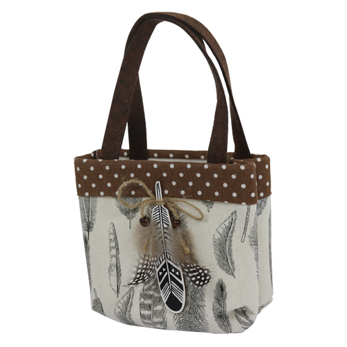 Dárková pevná taška - celoroční Pírko 17x9,5x15,5 cm, hnědo-bílá