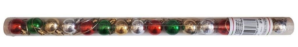 Różnokolorowe małe bombki pakowane w przezroczystej tubie. Nietłukące się bombki wykonane z tworzywa sztucznego, doskonałe rozwiązanie przy tworzeniu dekoracji świątecznych, gdy w domu przebywają małe dzieci lub zwierzęta. Bombki o średnicy 2,5 cm. W zestawie znajduje się 16 sztuk. číst celé