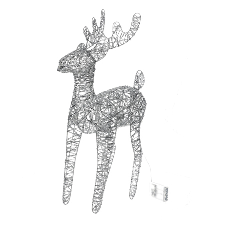 Oživte svůj domov s naším sobem s LED osvětlením v elegantní stříbrné barvě. Tento jedinečný kus je tvořen spletenými dráty ve tvaru siluety tohoto nádherného zvířete, který přináší do vašeho interiéru dávku světla a atmosféry severské zimy. Ideální jako dekorativní prvek na polici, komodě nebo stolku vedle postele, tento sob dodá prostoru jemný a moderní nádech s možností světelného efektu.