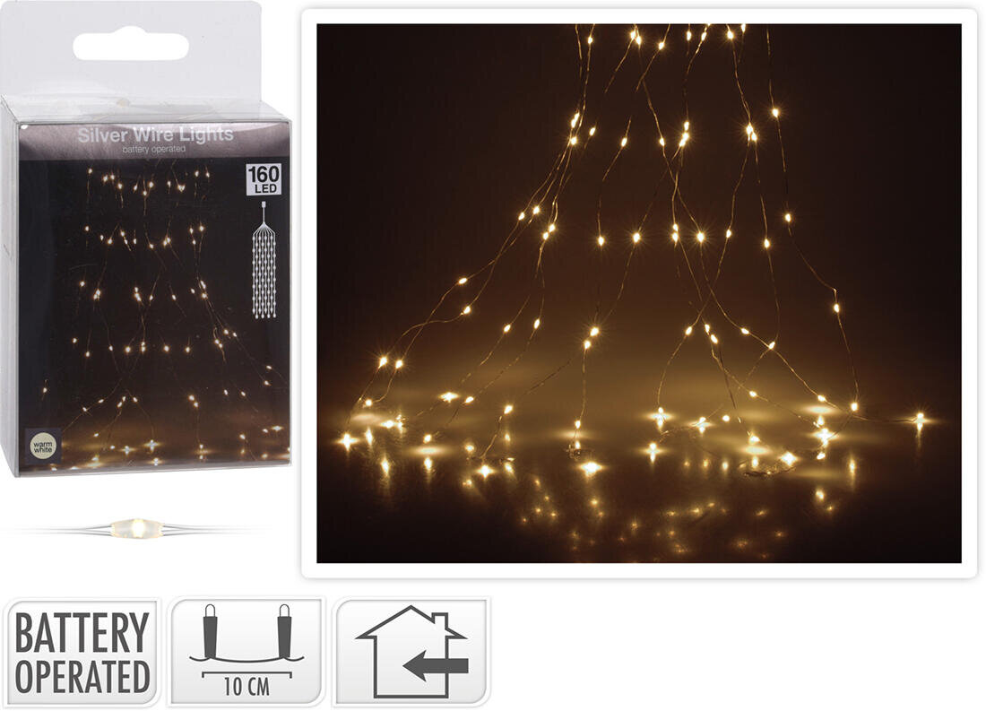 Vánoční osvětlení 1,9 m, 160LED, teplá BÍ, SÍŤ.