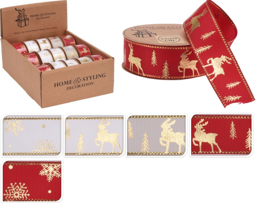 stuha text. 2,5cm x 2,7m, červená/zlatá, dárková