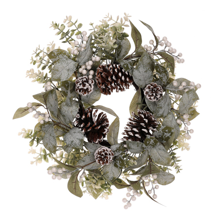 Věnec zelený (ø45 cm) - šišky a bílé bobule s perletí.