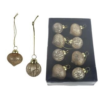 Tyto vánoční ozdoby jsou ideální pro ty, kteří chtějí kombinovat klasický design s kvalitním materiálem. Díky rozměrům o průměru 3 - 4 cm a výšce 4 cm se snadno zavěsí na stromeček nebo jiné dekorace a vytvoří elegantní a harmonickou výzdobu. Skleněný materiál jim dodává nejen nežný lesk, ale také příjemný a tradiční vzhled, který ocení každý milovník vánočních dekorací.