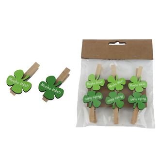 Sada dekoračních klipů ve tvaru čtyřlístků s nípisem - Mnoho štěstí.Sada obsahuje 6 čtyřlístků.Rozměry : 2,8 x 2 cm, délka 4,6 cm.Barva : kombinace zelená, přírodní.Materiál na bázi dřeva. číst celé