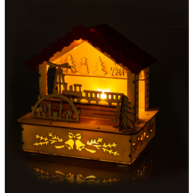 Vánoční dekorace - stánek z dřevěné překližky3 LEDBarva světla: teplá bíláRozměry: 120 x 90 x 120 mmVhodné pouze pro vnitřní použití (IP 20)Napájení: 2xAAABaterie nejsou součástí balení číst celé