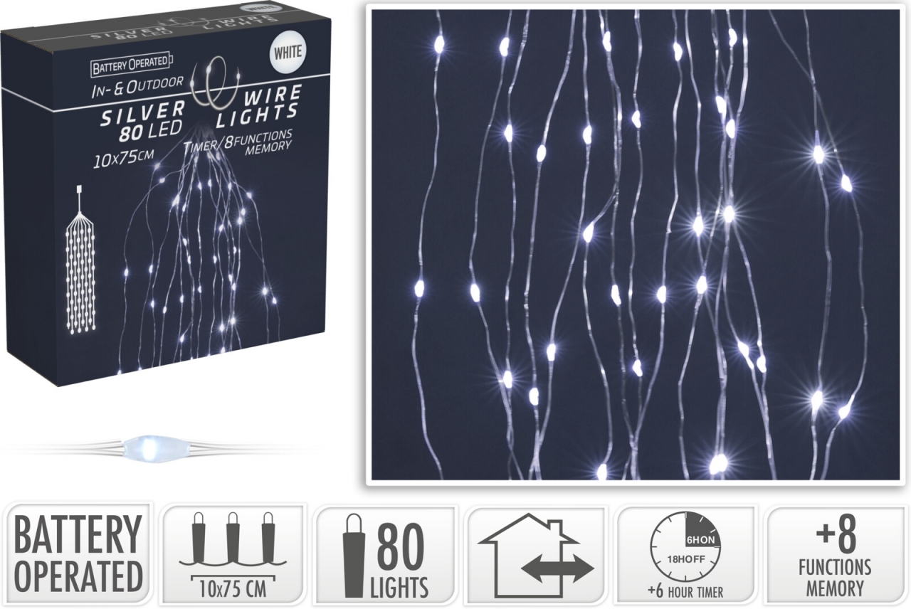 Barva drátku: stříbrnáNapájení: 3x AA baterie - nejsou součástí výrobkuVhodné do interiéru i ven.Barva: studená bílá